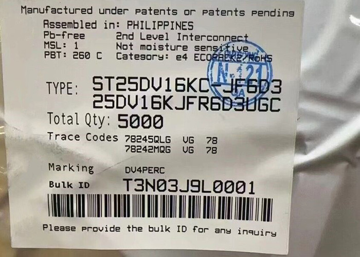 ST25DV16KC-JF6D3 - это RFID-теги NFC, предлагающие соответственно 16 Кбит электрически стираемой программируемой памяти (EEPROM).Первый - это серийная I2C-связь, которая может работать с источника питания постоянного тока., второй - это радиочастотная связь, активируемая, когда устройство действует как бесконтактная память, питаемая электромагнитной волной-носителем.